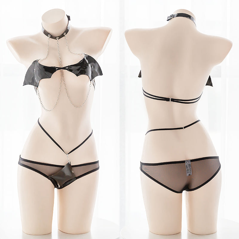- Package include: 1x top+1x pantie+1x choker+1x leg piece;