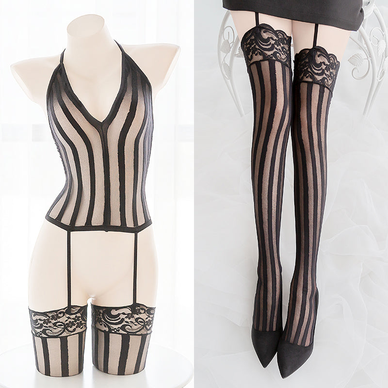 Garter Belts Sexy Black Sheer Full Body Bondage Fishnet Body Stocking