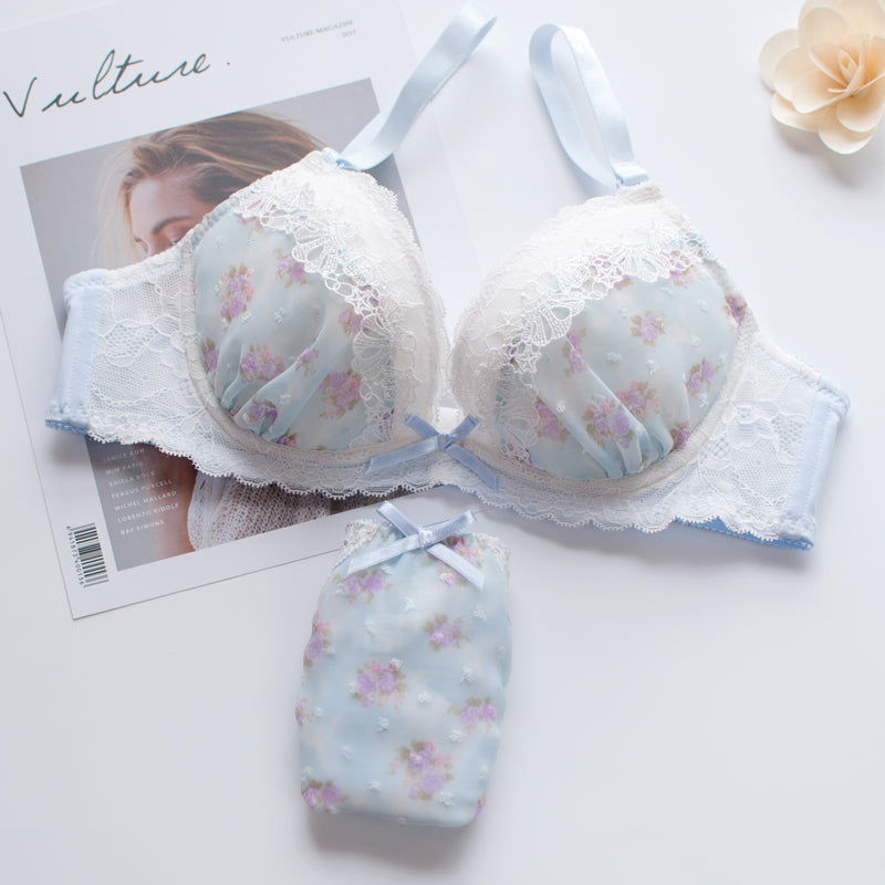 Japanese Flower Blossom Cute Sweetie Push Up Bra Set