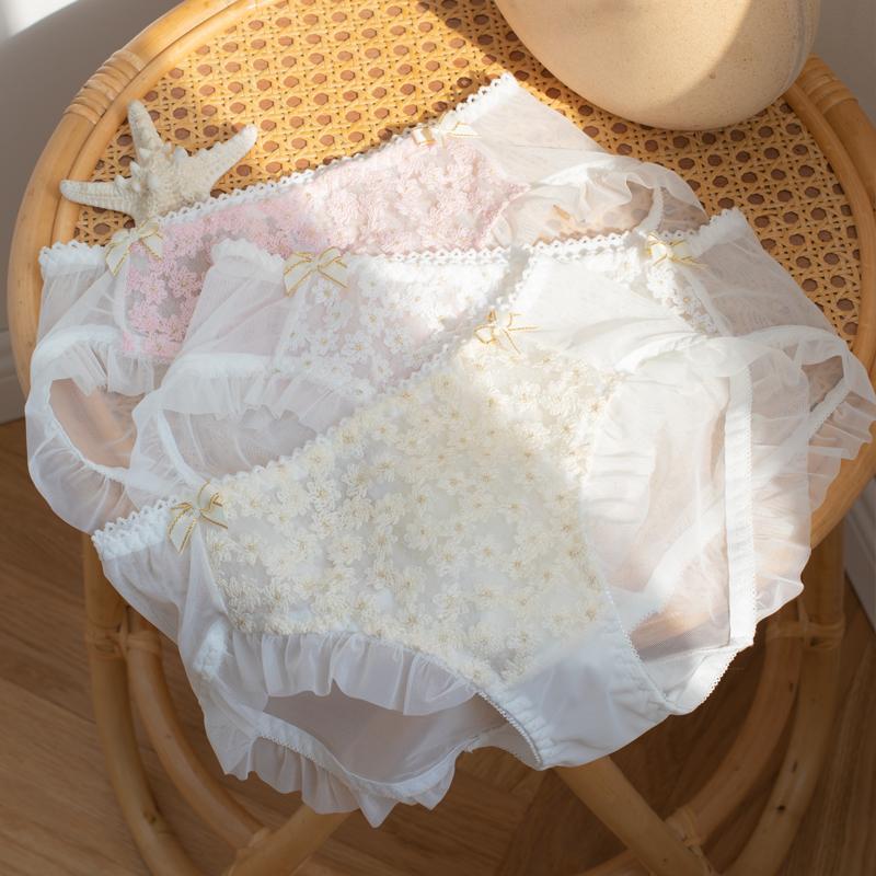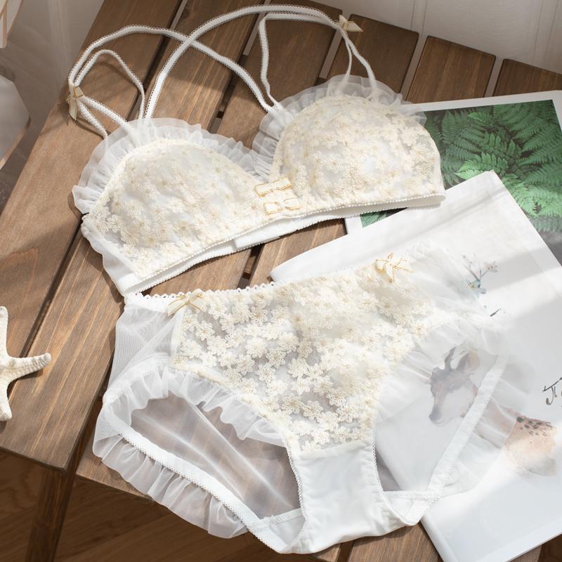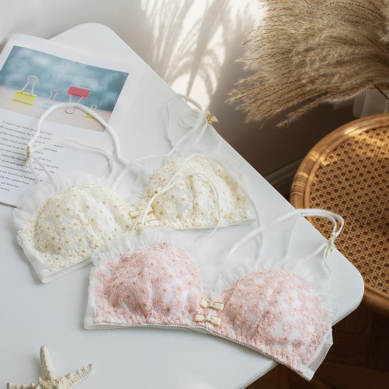 Japanese soft girl underwear cherry blossom girl fairy no steel ring bra set