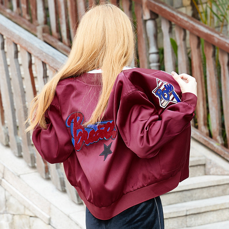 Lost In The Red Wine Star Embroided Baseball Jacket
