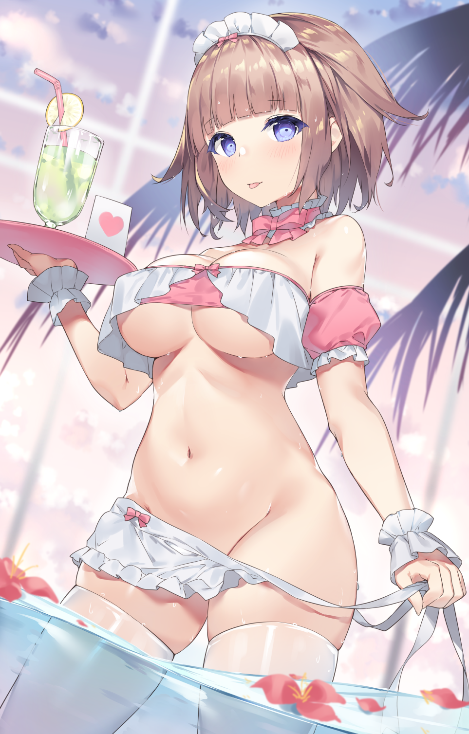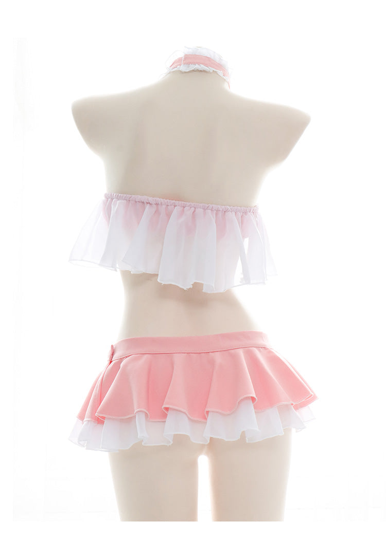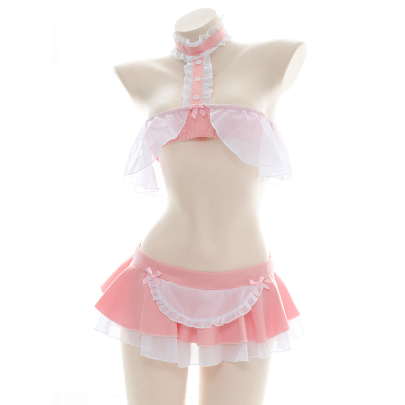 Ruffle Pink Anime Kawaii Japanese Choker Apron Maid Bikini Set