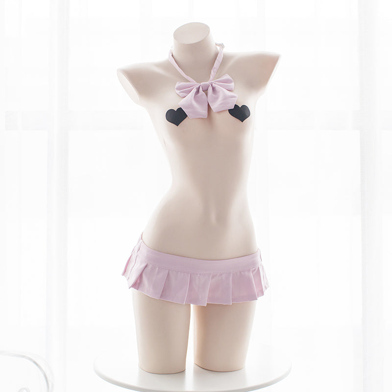 Pink Sexy Anime Sailor Bow Japanese School Girl Kawaii Outfit Lingerie