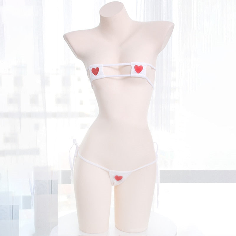Sexy kawaii Lingerie Anime Heart Embroidery Shimapan Bows Bikini Set