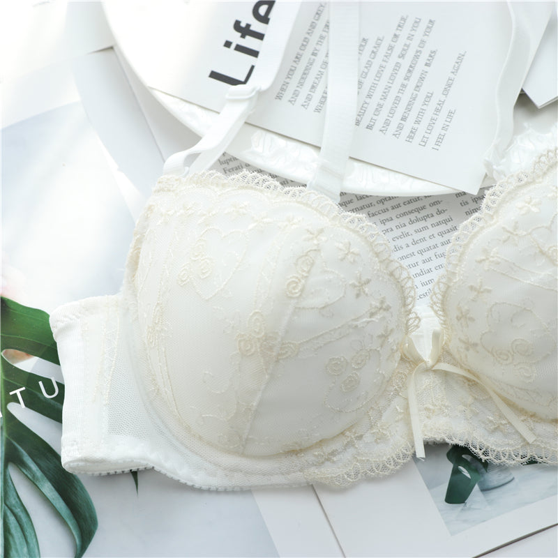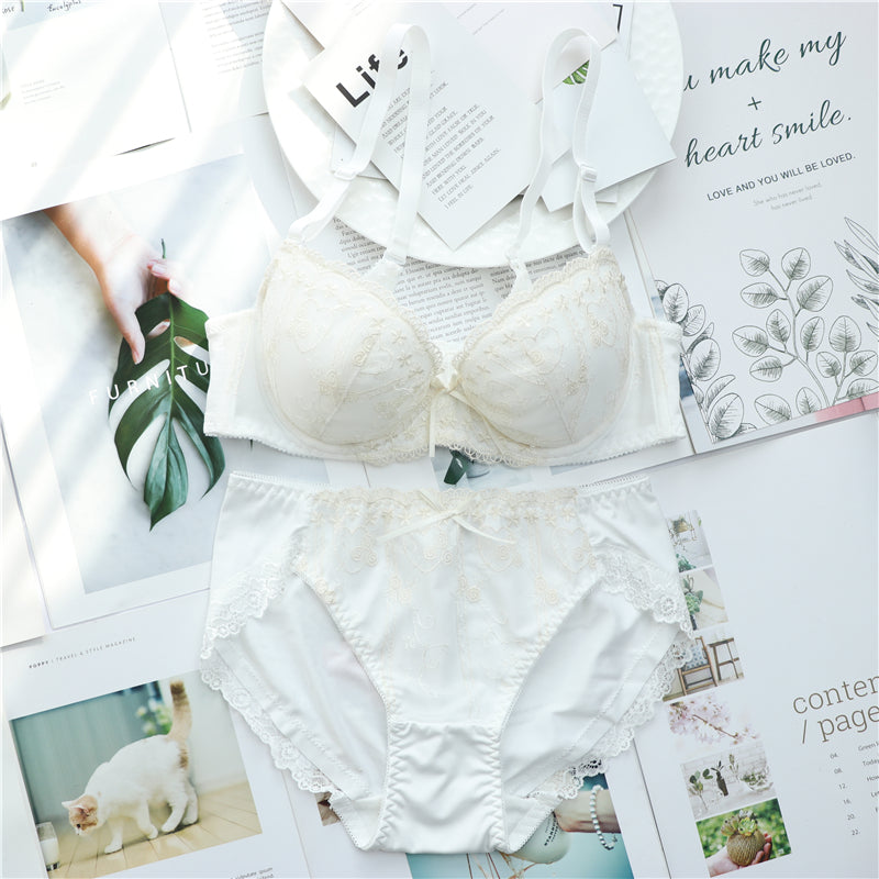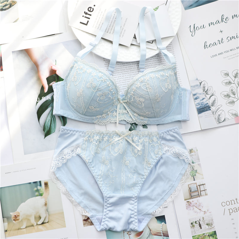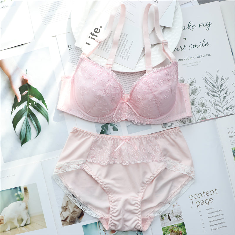 Tumblr Girly Dot Flower Lace Sweetie Heart Wave Trimmed Bra Set