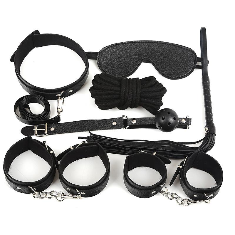 Package: Whip*1, oral ball*1, eye mask*1, ankle guard*1 pair, handcuffs*1 pair, , collar*1,Ropes 10m*1