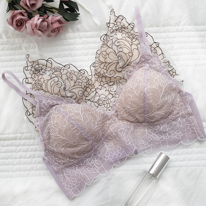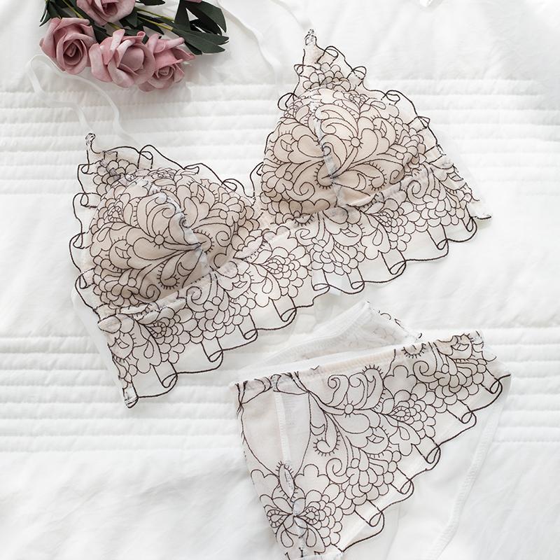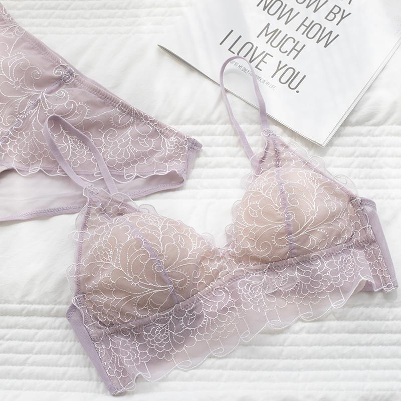 bralette French lace ins wind no steel ring beautiful back bra set
