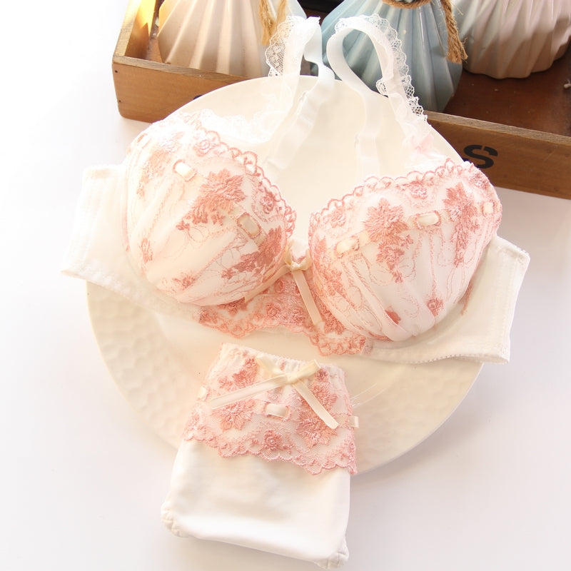 Dot Flower White Lace To Love Cute Sweet Bras And Panty Set