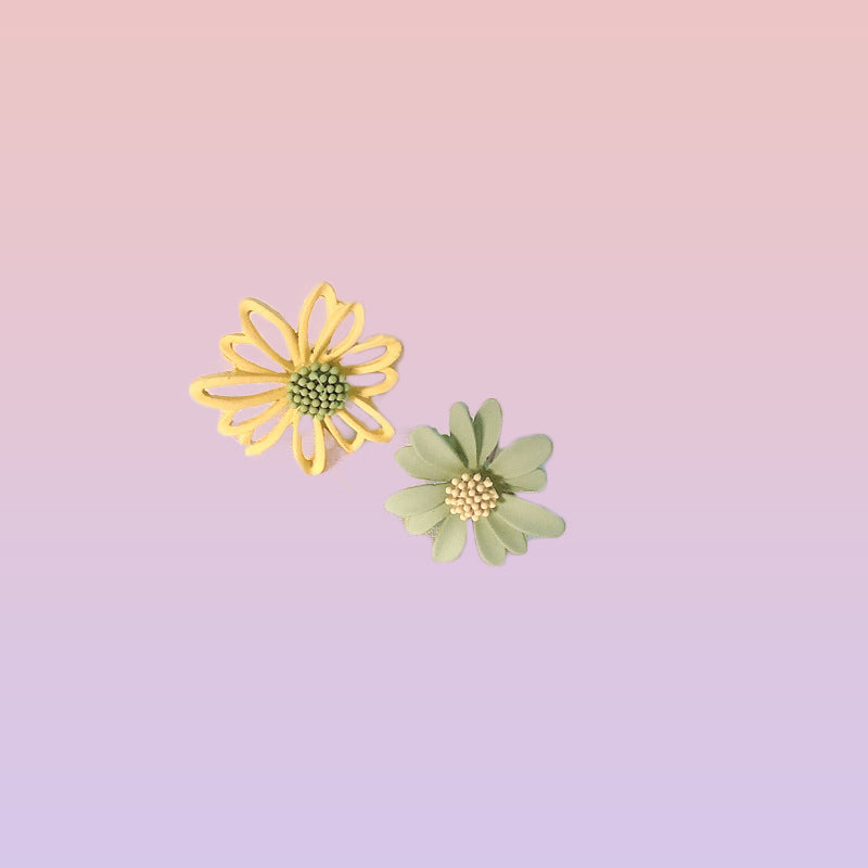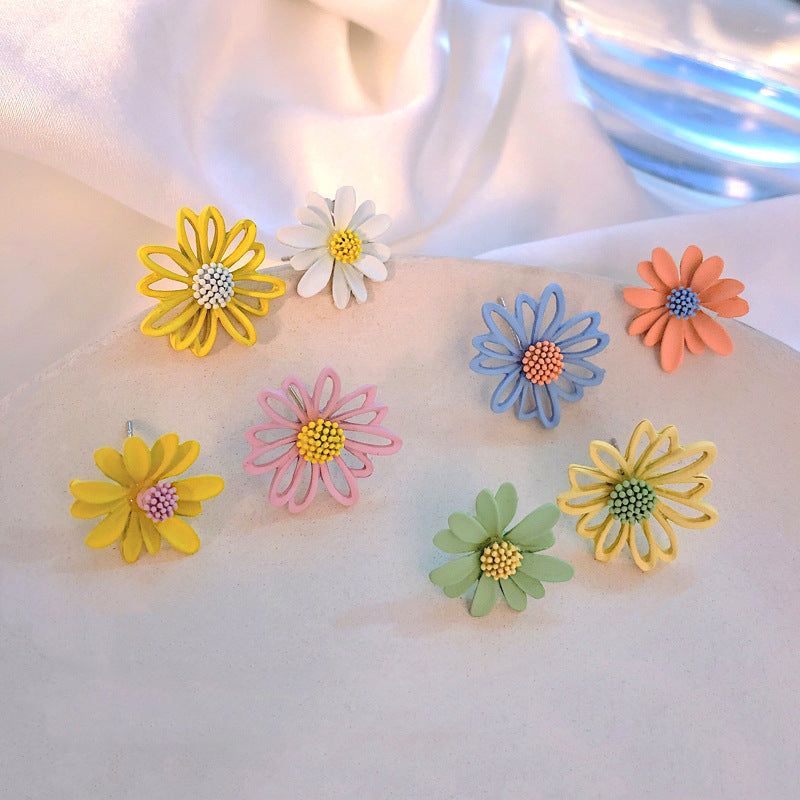 Girly heart small daisy earrings/small fresh and wild flower earrings, inspired by van goph's sunflower painting artworks, and combines nature into the design. Multi-color is available. Dresses with aesthetics, dress with fun. Shop with aesthetic looks at sofyee.