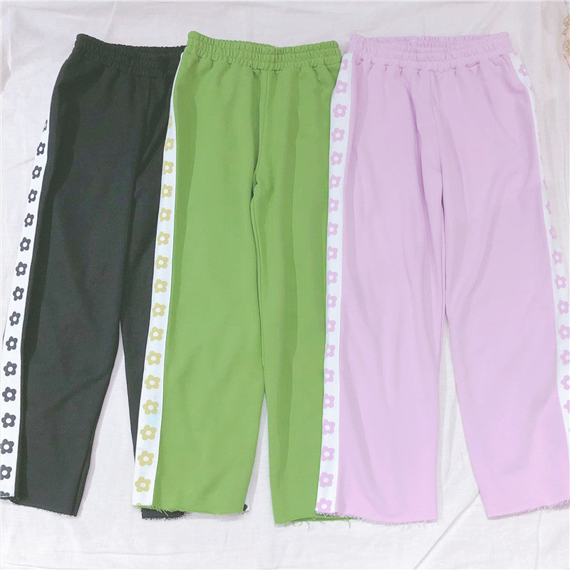 Harajuku Kawaii Line Of Flowers Pastel Pants
