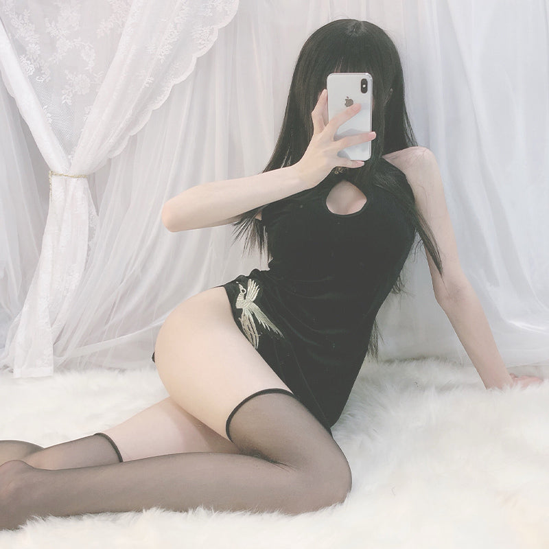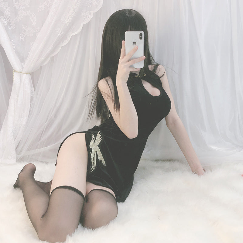 Japanese Anime Game Kawaii Lolita Gothic Maid Lingerie - Cat Keyhole Swan