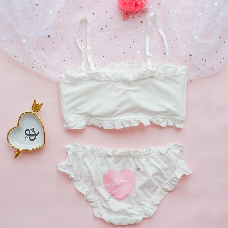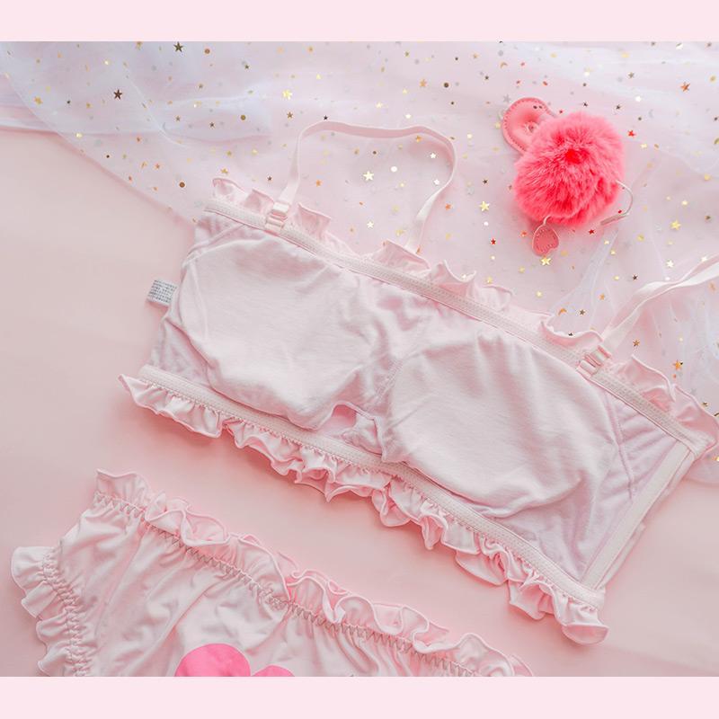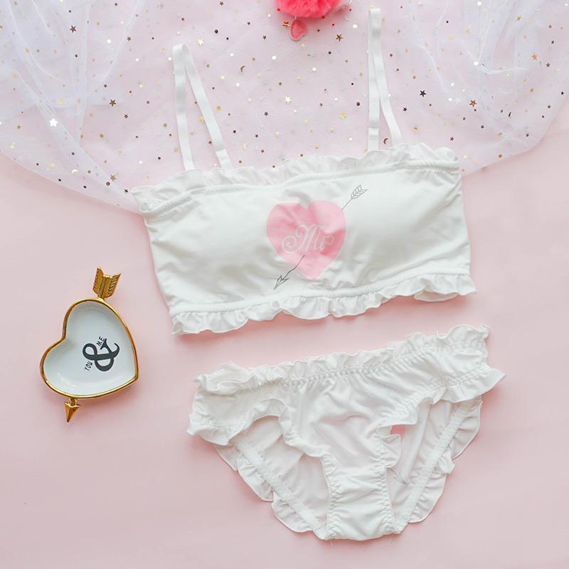 Japanese Cat Kawaii Comfy Cute Sweetie Heart Tube Top Lingerie Set