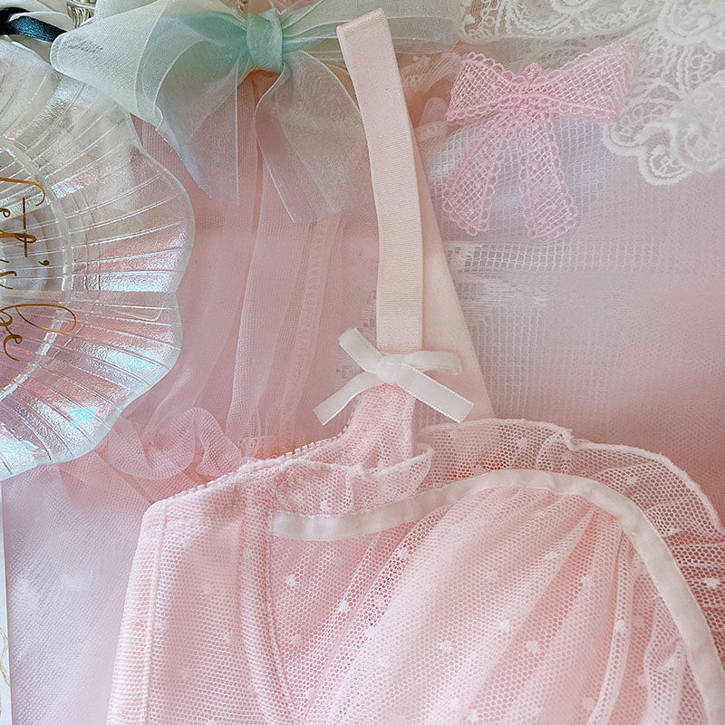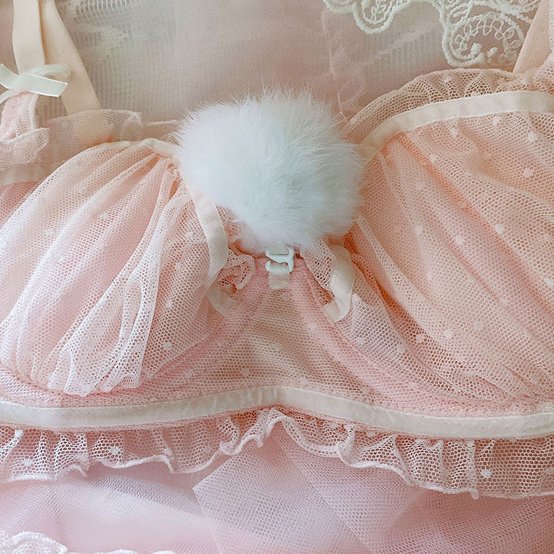 Japanese cute fur ball rabbit tail pink girl sexy lace ultra-thin steel ring suit