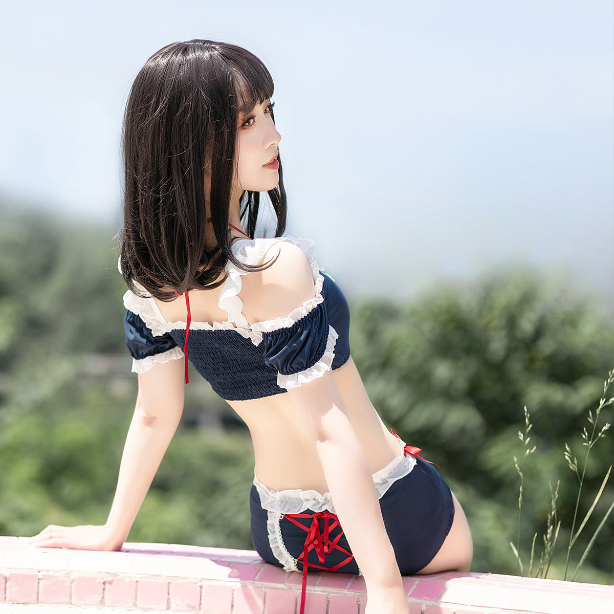 Japanese Cute Ruffle Pink Flower Swimsuit
