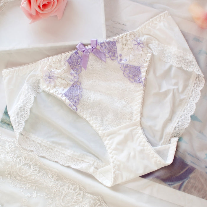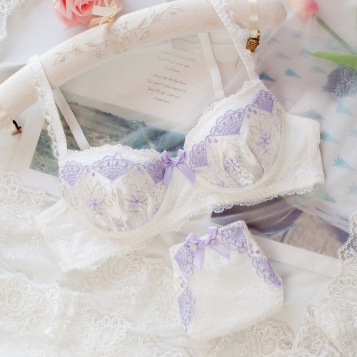 Japanese Dot Flower White Lace Wirefree Cute Sweet Bras And Panty Set