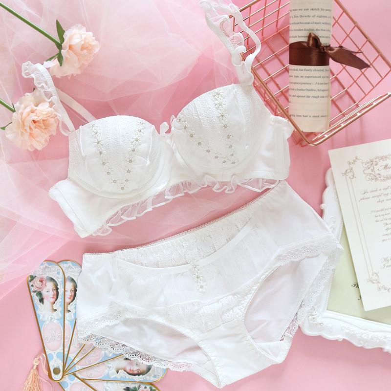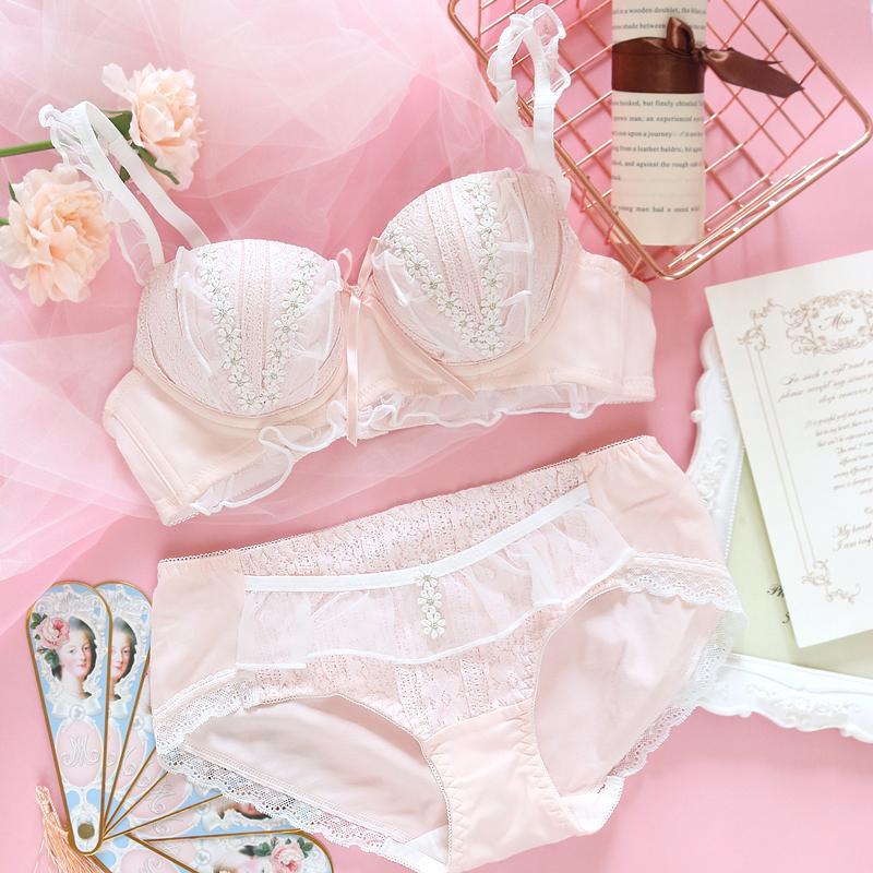 Japanese girl sweet and cute little daisy lace mesh gauze edge no steel ring micro gather bra set