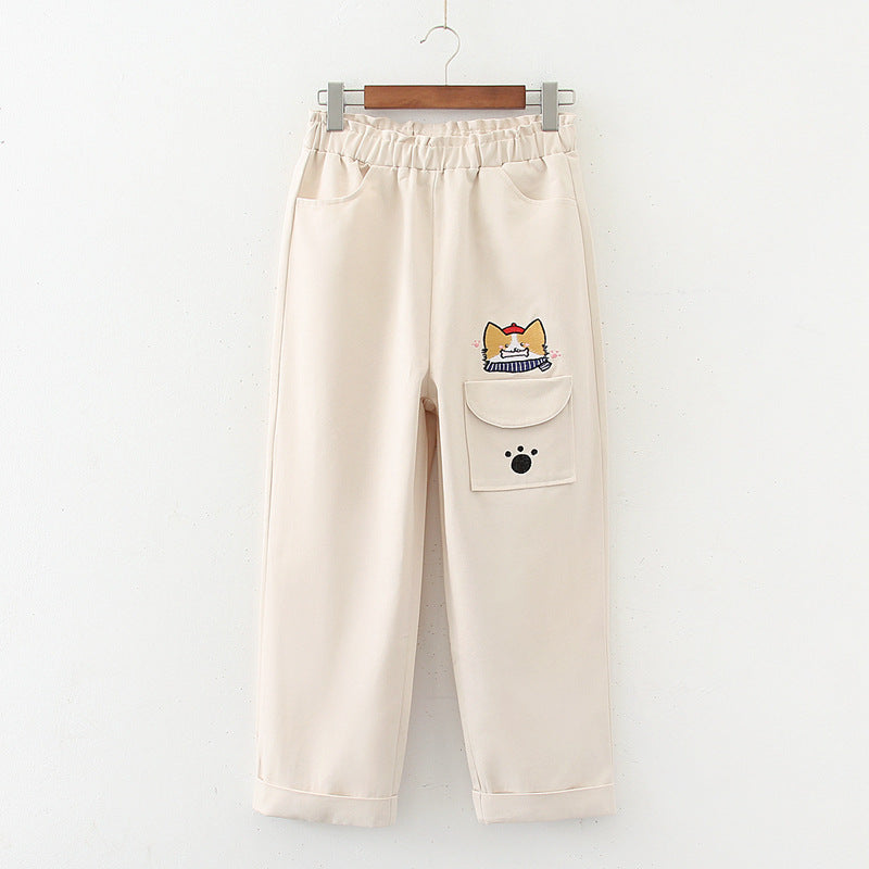 Japanese Korean Korean style all-match casual college style cartoon tooling straight trousers