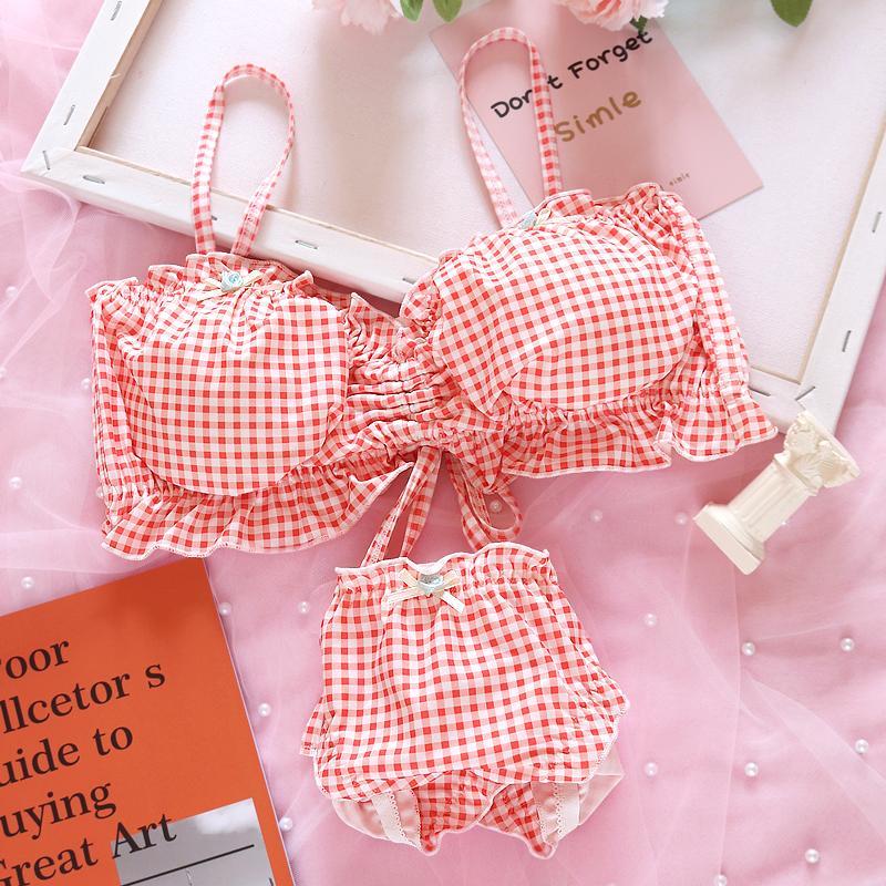 Japanese sweet and cute retro princess drawstring bow no steel ring tube top bra set