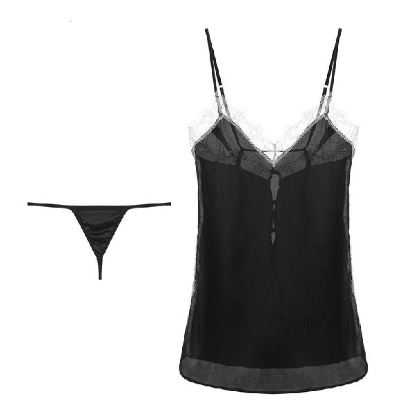 New Sexy Sling Nightgown With Chest Pad Long-Sleeved Pajamas 2-Piece Suit