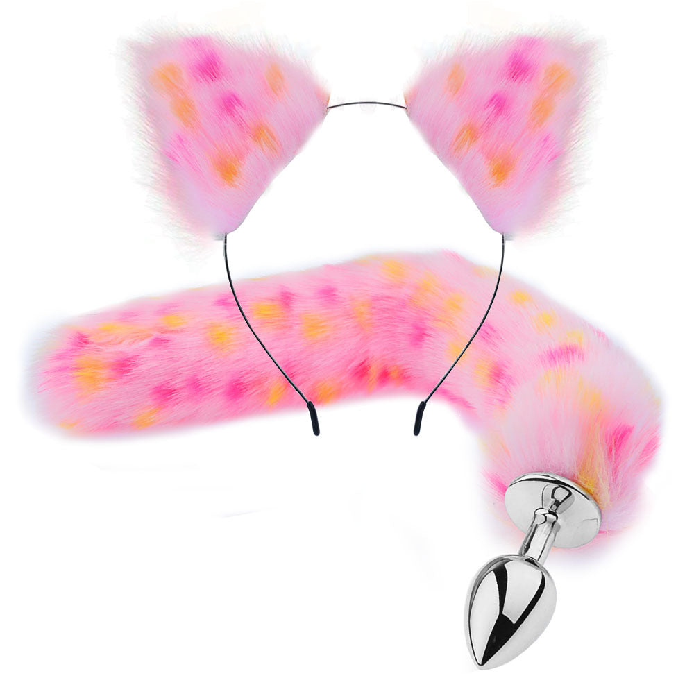 Pink Anime Sexy Cat Ear Headband Butt Plug Tail Set