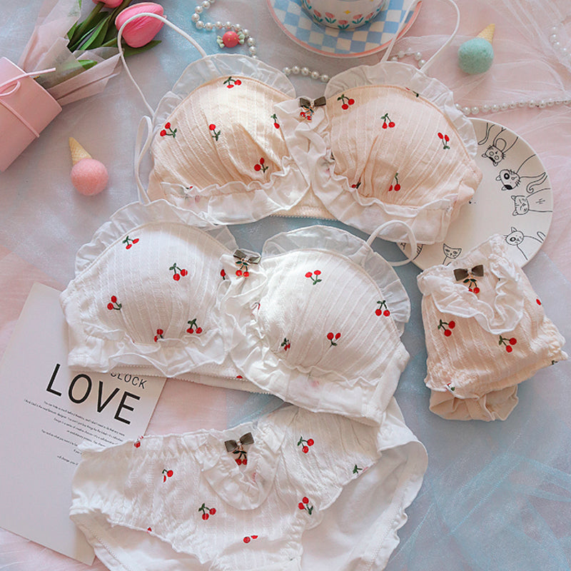 Pink Ruffle Pastel Lover Cute Cherry Baby Bralette Set