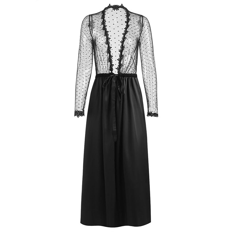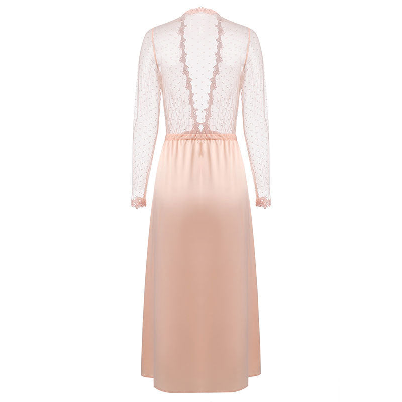 Plunge Polka Dot Silky Lace Robe