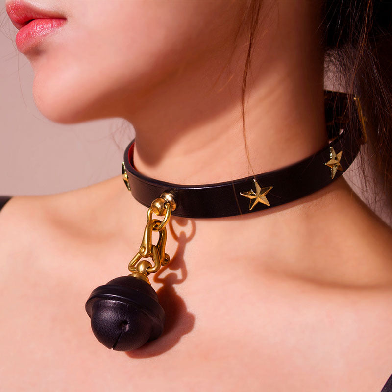 Sexy leather bell female slave torture collar-8pcs set