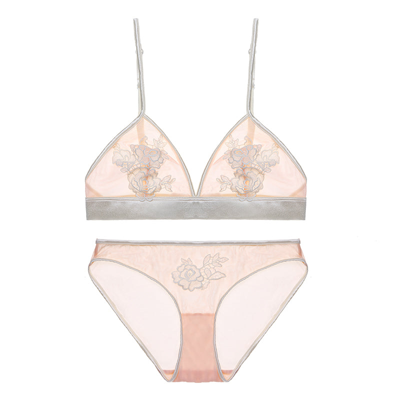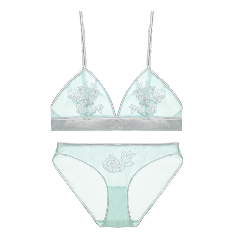 Sheer Mesh Lace Floral Embroidered Bra & Panty Sets