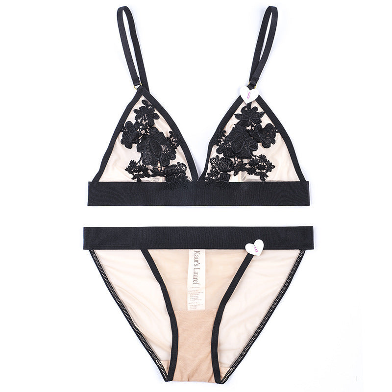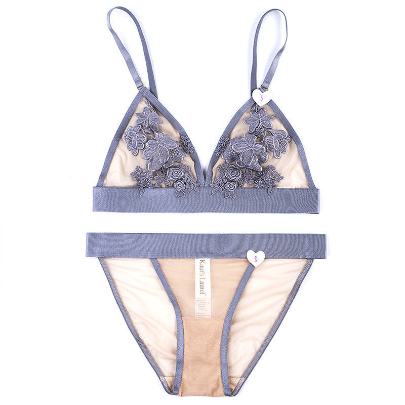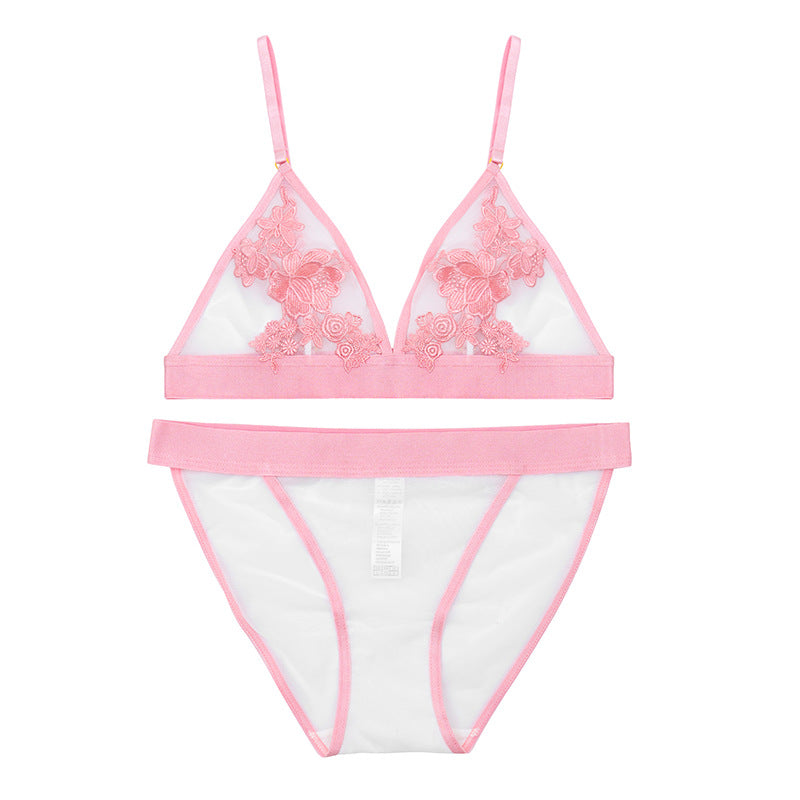 Sheer Mesh Lace Floral Embroidered Bra & Panty Sets