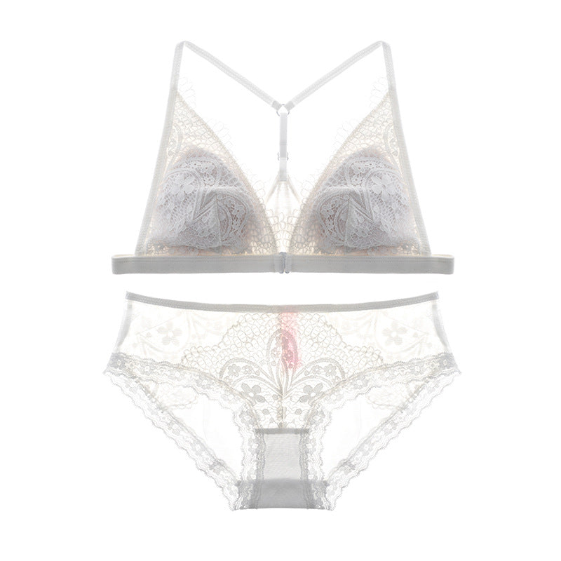 Sheer Mesh Lace Floral Embroidered Bra & Panty Sets
