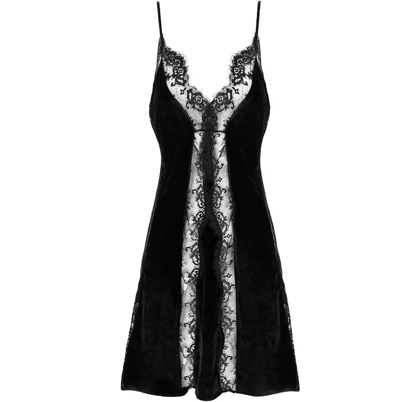 Silk Elegant Pretty Black Flower Quality Lace Baby Doll Set