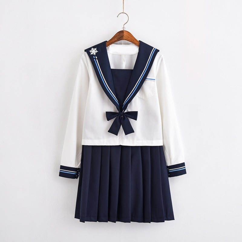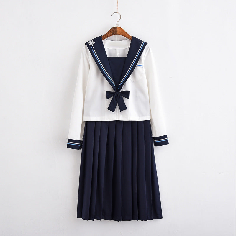 Soft sister jk uniform snowflake embroidery navy wind sailor college style suit