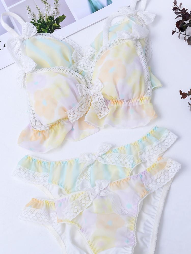 Sofyee Kawaii Japanese Harajuku Pastel Ruffle Bralette Set