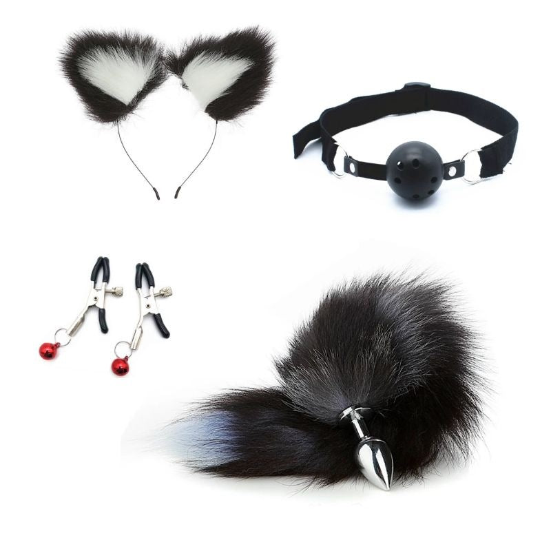 Package: 1*Cat Headband, 1*Buttplug Tail,Nipple clip*2,Oral ball*1
