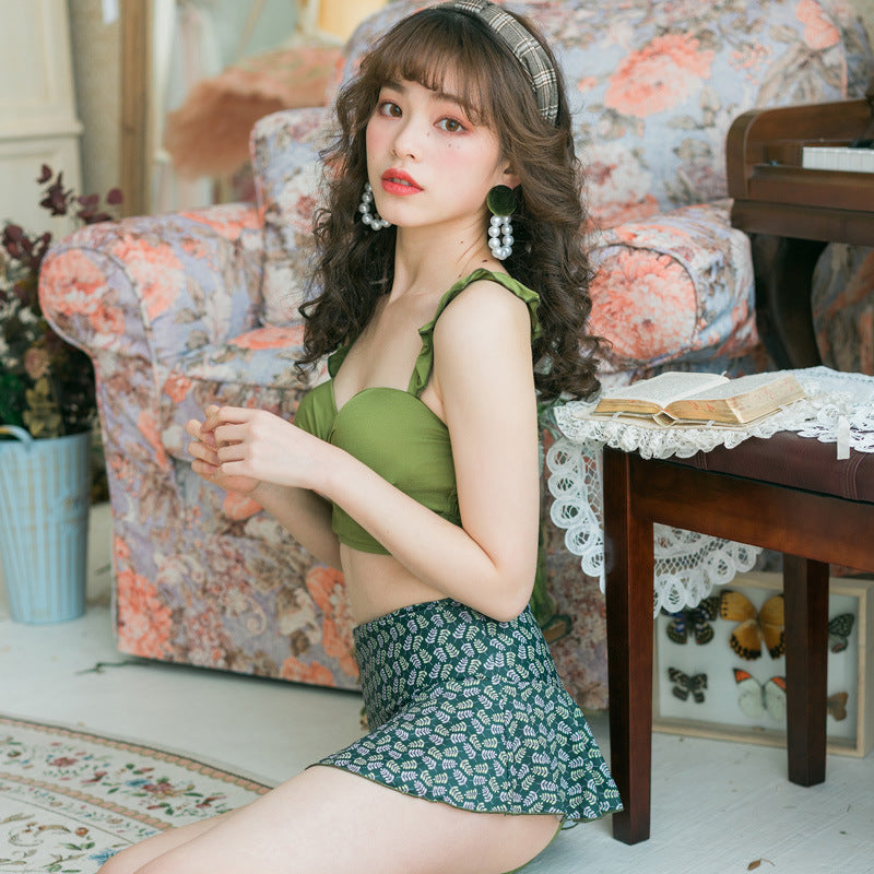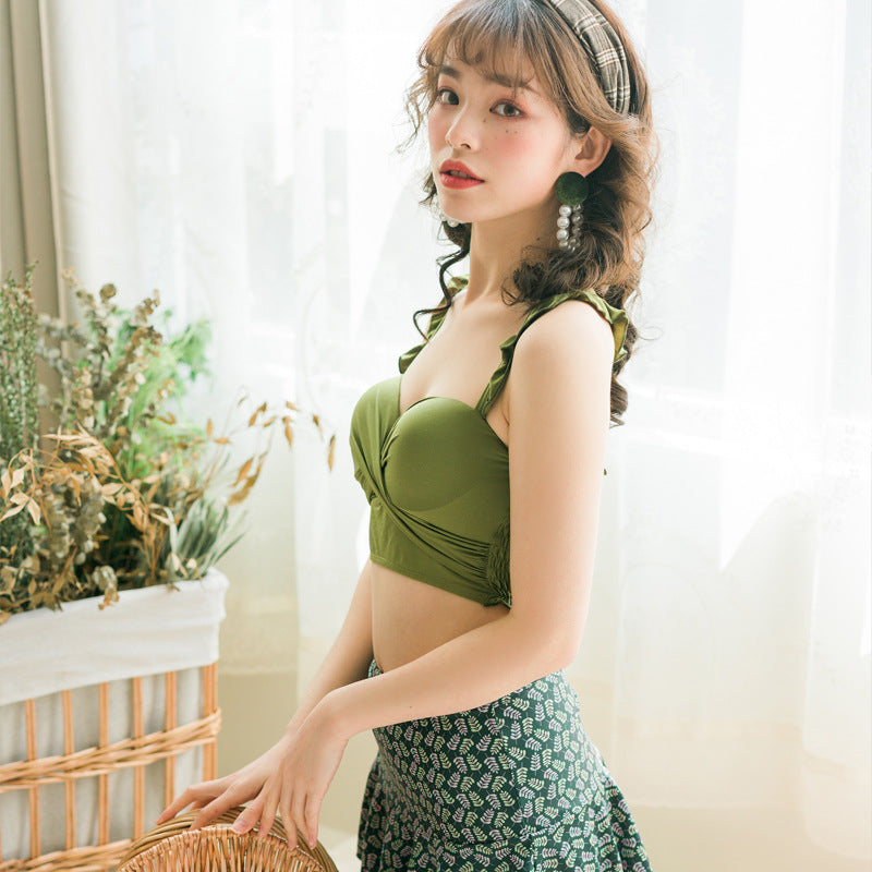 Sunny Holiday Cute Sweet High Waisted Printed Twisted Ruffle Swimsuit Set